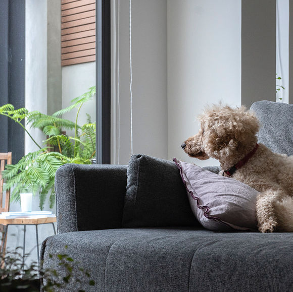 知性 品味是女主人給我們留下的最初印象 透過空間重整 讓光及空氣大量進入屋內 開闊室內空間 讓空氣聯貫了兩個場域 大門的簡約斜面格柵裝置讓內外有隱私卻不封閉安靜地融入了街景 默默守護
